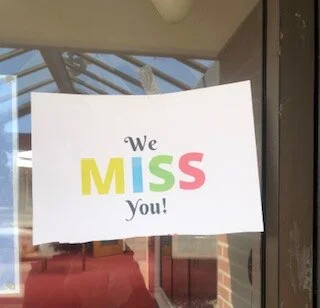 This sign was left on the door of the Church! “We miss you too!!”