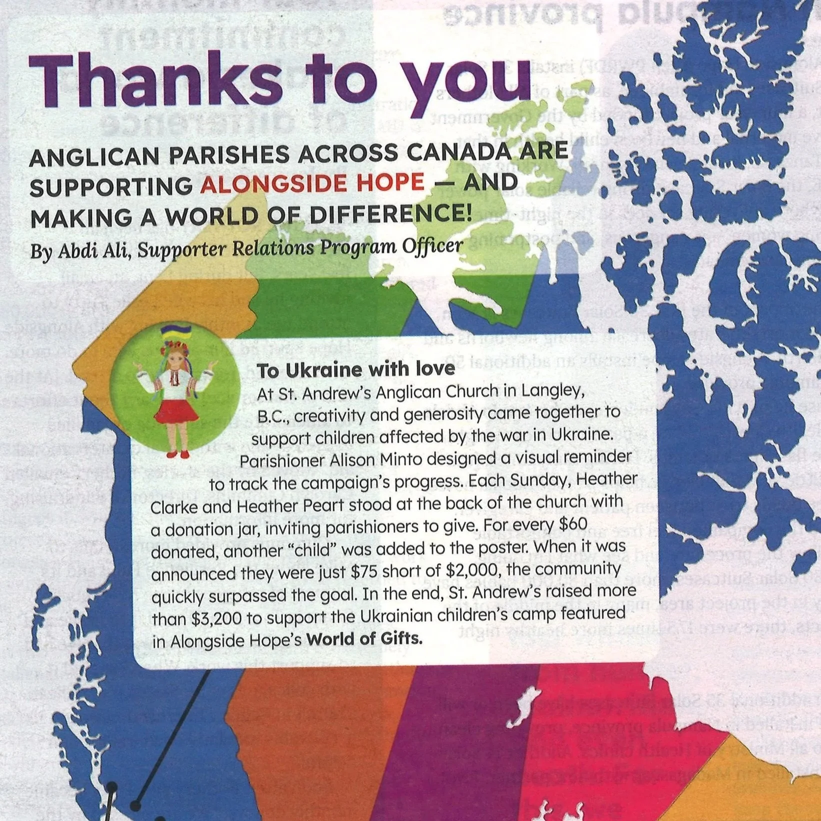 St Andrew’s has been named as one of five parishes across Canada that are supporting Alongside Hope- and Making a World of Difference!!